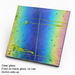 The picture represents a 4" x 4" piece of an entire 19" round sheet of glass.  The product picture is taken on an angle in low light. This displays the reflected property of the dichroic glass when viewed. The Color gradients and design elements will vary throughout the sheet.  Please be assured that we have gone through each and every sheet and any "duds" after cutting the 4" x 4" pieces from the sheet have been removed.  It is very possible that if you order multiple pieces of a color gradient, each piece will be a different color shading, thus the rainbow.  Enjoy this amazing glass!